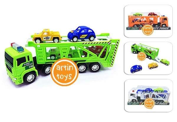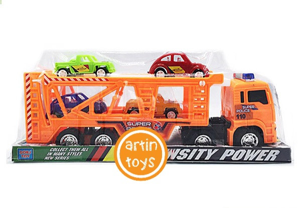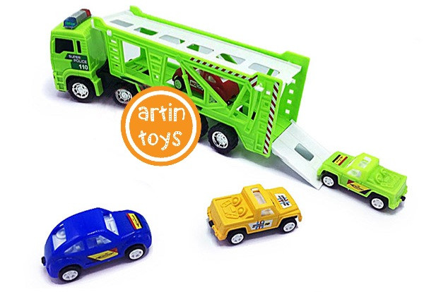 تریلی ماشین بر پلیس به همراه ۴ ماشین کوچک دیگر است این ماشین ها به راحتی قابل جدا شدن از تریلی هستن و میتونن ساعت ها کودک شما رو سرگرم کنند .